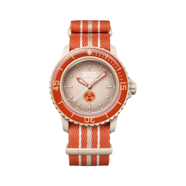 این ساعت Blancpain X Swatch ادای احترامی است به Fifty Fathoms ، اولین ساعت واقعی مخصوص غواصی. قاب و تاج کرم آن از Bioceramic ساخته شده‌اند. صفحهٔ ساعت با چندین لایه رنگ، افکت گرادیانی ایجاد می‌کند. شاخص‌های ساعت، عقربهٔ ساعت و دقیقه، و همچنین مقیاس روی بزل، همگی با Super‑LumiNova پوشانده شده‌اند تا در تاریکی خوانایی فوق‌العاده‌ای داشته باشند. موتور مکانیکی SISTEM51 از طریق شیشهٔ یاقوتی شفاف قابل مشاهده است و تصویر از اقیانوس منجمد شمالی و گونه Dendronotus Frondosus nudibranch به‌صورت چاپ دیجیتال روی آن دیده می‌شود.  پشت ساعت شامل پنج شعار الهام‌بخش درباره غواصی و حفاظت از طبیعت است. بند ناتو از تورهای ماهیگیری بازیافتی ساخته شده که از دریا جمع‌آوری شده‌اند. سگک و حلقه‌های بند نیز از بیوسرامیک تولید شده‌اند.