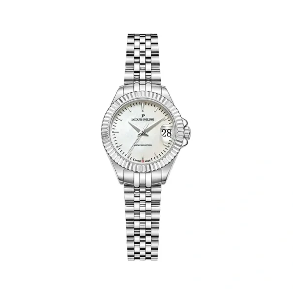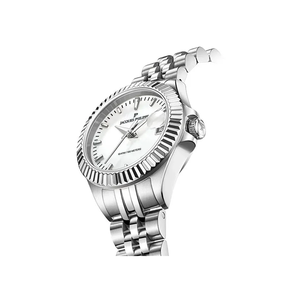 ساعت زنانه ژاک فیلیپ کوارتز مدل JPQLS821326 یکی دیگر از محصولات باکیفیت و شیک برند مطرح Jacques Philippe است. این مدل با طراحی منحصر به فرد، کیفیت ساخت بالا و ویژگیهای فنی برتر، یکی از انتخابهای برتر برای بانوانی است که به دنبال ساعتی لوکس و مقاوم هستند. اگر به دنبال خرید ساعتی با استایل رسمی و دوام عالی هستید، ساعت بند استیل ژاک فیلیپ مدل JPQLS821326 میتواند انتخابی بینظیر برای شما باشد.
