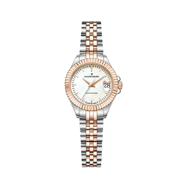 ساعت زنانه ژاک فیلیپ کوارتز مدل JPQLS827388RG با طراحی لوکس و کیفیت ساخت فوق‌العاده، یکی از بهترین گزینه‌ها برای بانوانی است که به دنبال ساعتی شیک و بادوام هستند. این ساعت با موتور سوئیسی ، بند استیل مقاوم و طراحی مدرن، انتخابی مناسب برای استفاده روزمره و همچنین موقعیت‌های رسمی است. خرید ساعت های ژاک فیلیپ از فروشگاه ایران ساعت به شما این امکان را می‌دهد که یک ساعت اورجینال و با کیفیت را با خیال راحت و قیمتی مناسب تهیه کنید.