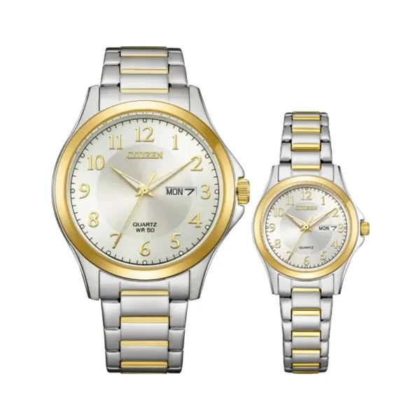 ساعت ست سیتیزن کوارتز مدل BF2026-89A – EQ0614-52B یکی از مدلهای برجسته برند CITIZEN است که با طراحی کلاسیک و ویژگیهای مدرن خود، توجه بسیاری از علاقهمندان به ساعتهای مچی را جلب میکند. این ساعت با ترکیب زیبای خود از ویژگیهای عملکردی و زیباییشناختی، گزینهای ایدهآل برای بانوان و آقایانی است که به دنبال ساعتهایی با طراحی بینظیر و کیفیت بالا هستند.