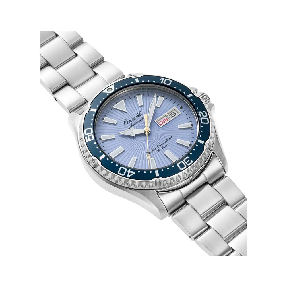 ساعت مردانه اورینت اتوماتیک مدل RA-AA0823L یکی دیگر از محصولات باکیفیت و شیک برند مطرح ORIENT است. این مدل با طراحی منحصر به فرد، کیفیت ساخت بالا و ویژگیهای فنی برتر، یکی از انتخابهای برتر برای آقایان است که به دنبال ساعتی لوکس و مقاوم هستند. اگر به دنبال خرید ساعتی با استایل رسمی و دوام عالی هستید، ساعت بند استیل اورینت مدل RA-AA0823L میتواند انتخابی بینظیر برای شما باشد. ساعت Orient Mako III RA-AA0823L یک نسخه محدود و زیبا برای جشن 75 سالگی برند Orient است. این ساعت با صفحه ساعت آبی آسمانی با بافت خاص، عقربهی ثانیهای طلایی و قاب پشتی با شماره سریال، ظاهری جذاب و متفاوت دارد. با داشتن موتور اتوماتیک، مقاومت در برابر آب تا 200 متر، و ویژگیهایی مانند توقف عقربهی ثانیه و نمایش تاریخ و روز هفته، این ساعت هم برای غواصی و هم برای استفاده روزمره مناسب است و تنها در 6000 قطعه در سراسر جهان تولید شده است.