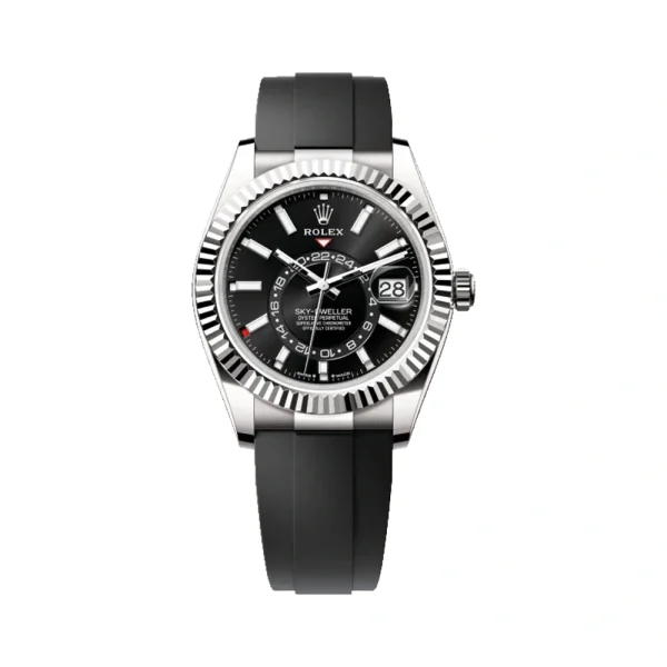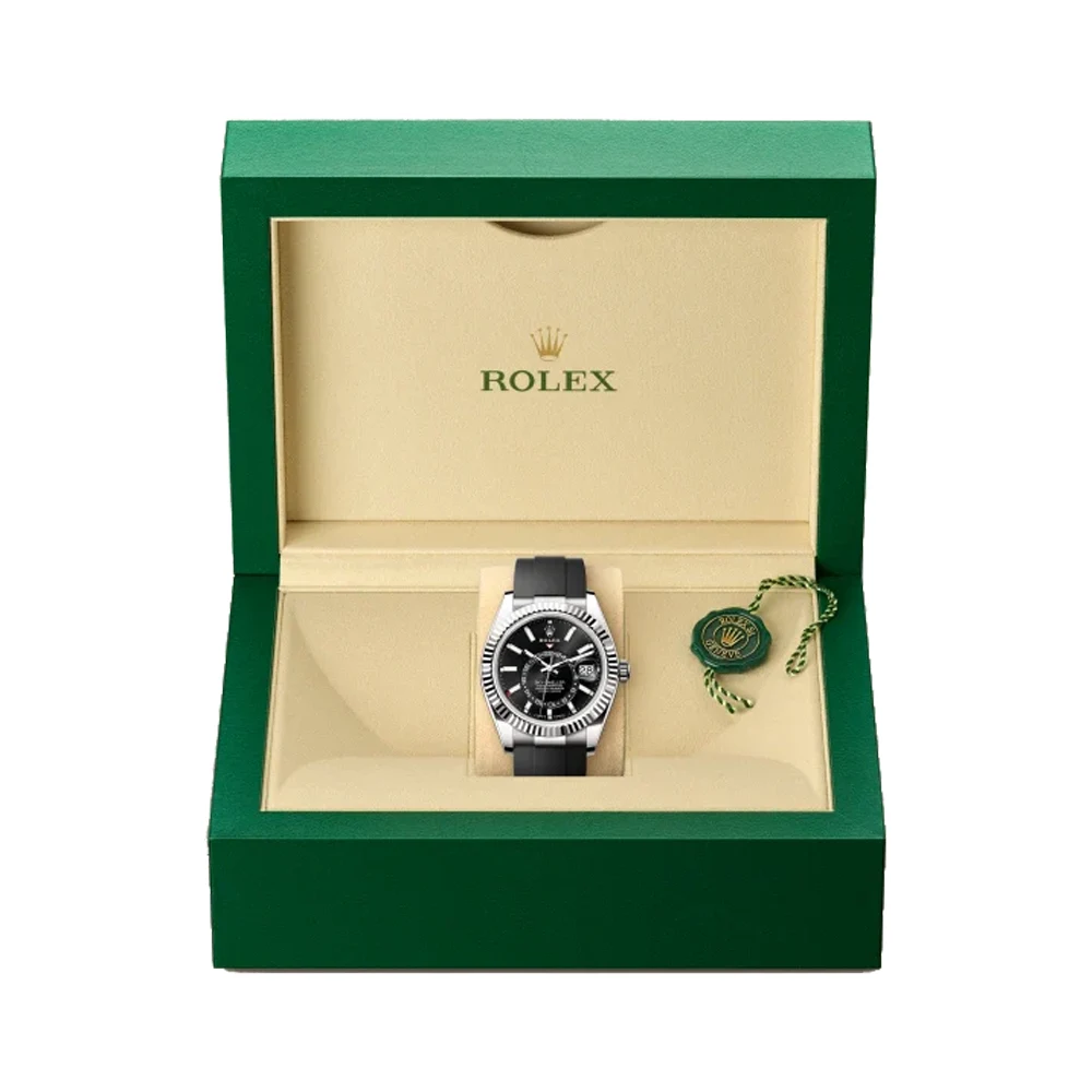 ساعت مردانه رولکس Sky-Dweller اتوماتیک مدل 336239 یکی دیگر از محصولات باکیفیت و شیک برند مطرح Rolex است. این مدل با طراحی منحصر به فرد، کیفیت ساخت بالا و ویژگی‌های فنی برتر، یکی از انتخاب‌های برتر برای آقایان است که به دنبال ساعتی لوکس و مقاوم هستند. رولکس Reference 336239 که در مجموعه Sky-Dweller قرار دارد، ساعتی پیچیده و لوکس با قاب ۴۲ میلی‌متری از طلای سفید، صفحه مشکی براق، موتور مکانیکی خودکار کالیبر 9002 با قابلیت نمایش دو منطقه زمانی و تقویم سالانه، ذخیره انرژی ۷۲ ساعته و گواهی سوپرلاتیو کرونومتر است که با بزل شیار‌دار چرخان دوطرفه مجهز به سیستم نوآورانه Ring Command و بند راحت و مقاوم Oysterflex عرضه می‌شود و ترکیبی از کارایی سفرهای بین‌المللی و شکوه طراحی رولکس را به نمایش می‌گذارد. اگر به دنبال خرید ساعتی با استایل کلاسیک و دوام عالی هستید، ساعت بند رابر رولکس مدل 336239 می‌تواند انتخابی بی‌نظیر برای شما باشد.