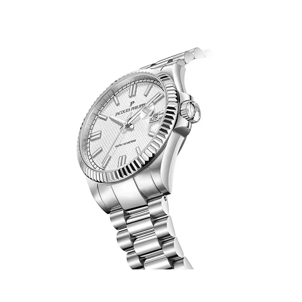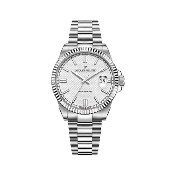 ساعت مردانه ژاک فیلیپ کوارتز مدل JPQGS591326V3 یکی دیگر از محصولات باکیفیت و شیک برند مطرح Jacques Philippe است. این مدل با طراحی منحصر به فرد، کیفیت ساخت بالا و ویژگیهای فنی برتر، یکی از انتخابهای برتر برای آقایان است که به دنبال ساعتی لوکس و مقاوم هستند. اگر به دنبال خرید ساعتی با استایل رسمی و دوام عالی هستید، ساعت بند استیل ژاک فیلیپ مدل JPQGS591326V3 میتواند انتخابی بینظیر برای شما باشد.